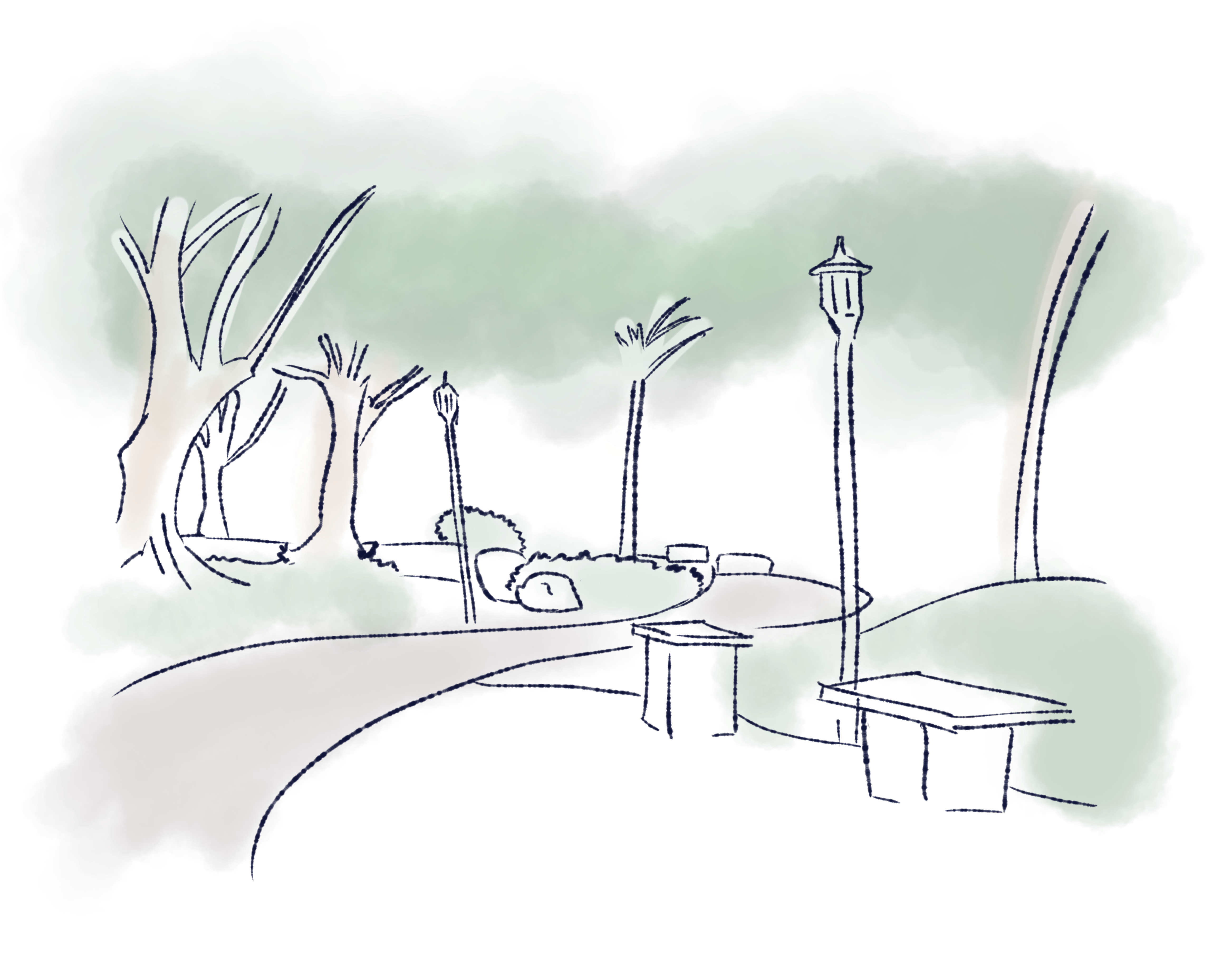 Estoy en el parque con mi libreta. Hace sol, pero el viento no me deja pintar tranquila. Cada vez que intento trazar una línea, el papel se mueve. Termino persiguiendo mis propias hojas por el pasto. Aún así, luego logro dibujar unas ramas y la sombra de una fuente. No se parecen mucho a lo real, pero eso no me molesta. Al revisar los dibujos, siento que son más recuerdos que paisajes. Supongo que mi mano dibuja lo que mi mente retiene, no lo que mis ojos ven.