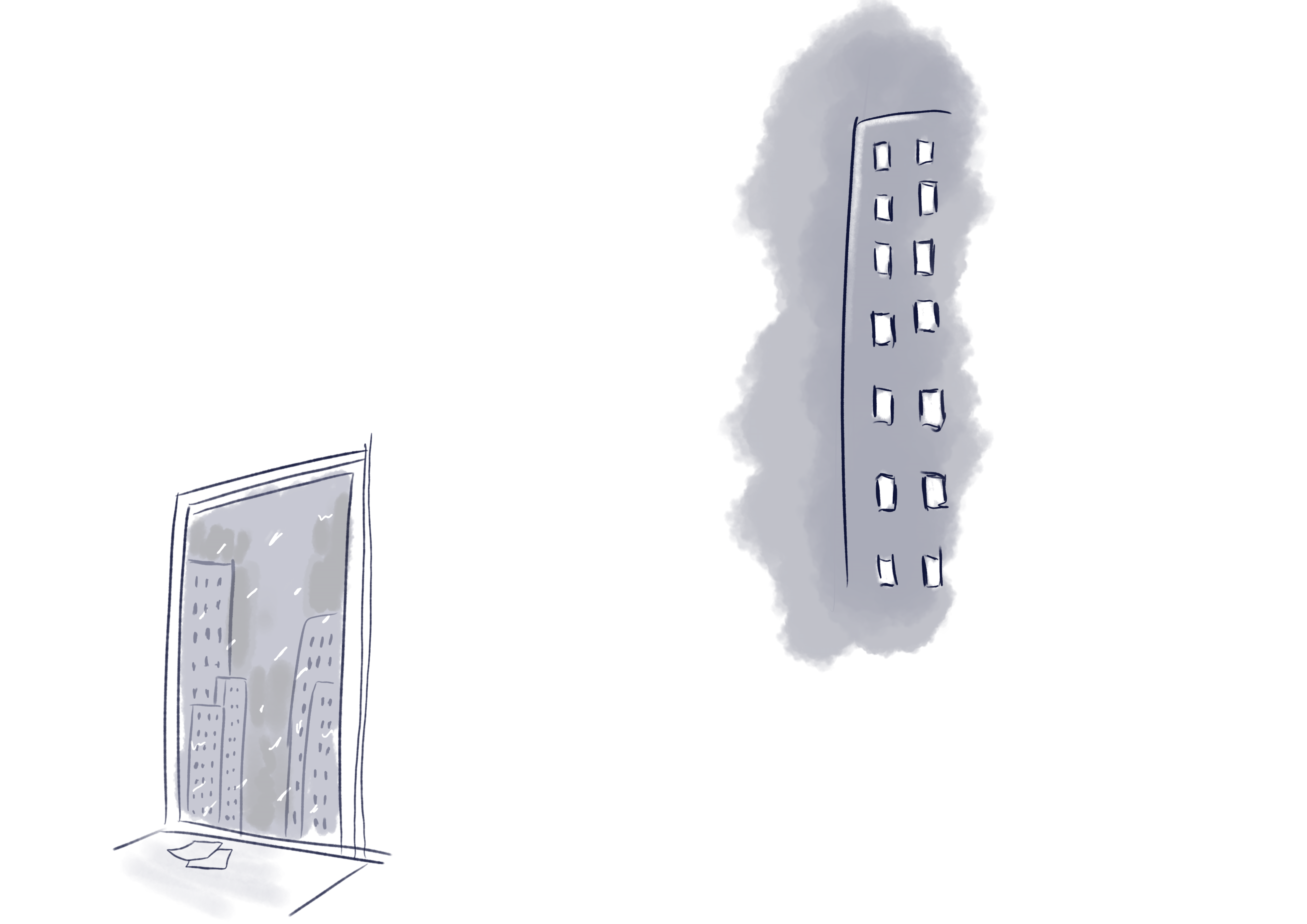 Me siento junto a la ventana con el cuaderno. Pinto la lluvia cayendo y dejando rastros sobre el vidrio. Dejo que el agua corra sobre la hoja y forme caminos propios. Al terminar, la página tiene ese brillo húmedo que me gusta. A veces creo que mis dibujos se parecen a mí: un poco desordenados, con manchas, pero honestos.